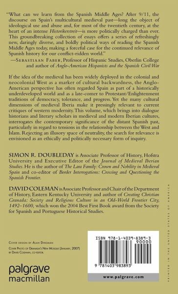 "What can we learn from the Spanish Middle Ages? After 9/11, the discourse on Spain s multicultural medieval past - long the object of ideological use and abuse and, formost of the twentieth-century, at the heart of an intense Historikerstreit - is more politically charged than ever. This groundbreaking collection of essays offers a series of refreshingly new, daringly diverse, and boldly political ways of reading the Spanish Middle Ages today, making a forceful case for the continued relevance of Spanish history for our conflict-ridden world." - Sebastiaan Faber, Professor of Hispanic Studies, Oberlin College and author of Anglo-American Hispanists andthe Spanish Civil War