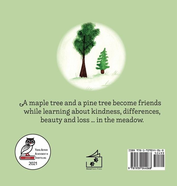 An old maple and a young pine tree that live on the edge of a meadow are close friends, even though they are very different from one another. Over the years, the pine tree learns valuable lessons from her older friend, and they enjoy watching the children who come to play in the meadow. When the maple tree is blown over and uprooted in a storm, she is taken away by the farmer who owns the meadow. The pine tree is left alone and lonely. However, one day she notices that young maples, the children of her friend who have come from the maple tree's seeds, have begun to grow up around her feet. As their "forever friend," she takes care of the young trees and shares the lessons their mother taught her, which relieves her loneliness. The story teaches children about caring for others, enjoying our differences, and understanding that love goes on even in the face of loss. Scientists have told us for years that trees are social beings that communicate continually and care for one another. For children who may be too young to grasp the nuances of the scientific rhetoric surrounding the life of trees, In the Meadow, a delightful fiction read, introduces them to the concept of caring among trees. This story was originally told by a four-year-old to his grandmother. Therefore, not every aspect of the book may be accurate from the scientific point of view, but the themes are timeless. The concepts of love, kindness, resilience, service, and appreciation for differences are modeled for young children without moralizing or overt lessons. This is a good snuggle-up-and-read book for parents to share with children who are not yet readers and a nice volume for a young reader's library.