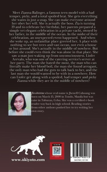 Meet Zianna Balinger, a famous teen model with a bad temper, picky, and a total spoiled brat. She gets everything she wants in just a snap. She can make everyone around her obey her will. She is actually the boss. Zia is turning 19 and to celebrate her birthday, her parents prepared a simple yet elegant celebration in a private yacht, owned by her father, in the middle of the ocean. In the midst of their celebration, an unexpected event happened. And when she woke up, an unfamiliar place greeted her. A place with nothing to see but trees and vast ocean, not even a house or hut around. She's actually in the middle of nowhere. But before she could even think she was alone in that place. She saw a man just waking up from unconsciousness. Liofer Arevalo, who was one of the catering service's server at her party. The man she hated the most, the man who can literally make her blood boil, the man she found arrogant, the only man who had the guts to talk back to her, and the last man she would wanted to be with in a nowhere. How can Liofer get along with a spoiled, bad temper and picky Zianna while they are in the middle of nowhere?