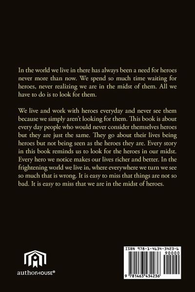 In the world we live in there has always been a need for heroes never more than now. We spend so much time waiting for heroes, never realizing we are in the midst of them. All we have to do is to look for them. We live and work with heroes everyday and never see them because we simply aren't looking for them. This book is about every day people who would never consider themselves heroes but they are just the same. They go about their lives being heroes but not being seen as the heroes they are. Every story in this book reminds us to look for the heroes in our midst. Every hero we notice makes our lives richer and better. In the frightening world we live in, where everywhere we turn we see so much that is wrong. It is easy to miss that things are not so bad. It is easy to miss that we are in the midst of heroes.