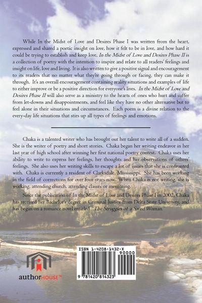 While In the Midst of Love and Desires Phase I was written from the heart, expressed and shared a poetic insight on love, how it felt to be in love, and how hard it could be trying to establish and keep love, In the Midst of Love and Desires Phase II is a collection of poetry with the intention to inspire and relate to all readers' feelings and insight on life, love and living. It is also written to give a positive signal and encouragement to its readers that no matter what they're going through or facing, they can make it through. It's an overall encouragement containing reality situations and examples of life to either improve or be a positive direction for everyone's lives. In the Midst of Love and Desires Phase II will also serve as a ministry to the hearts of ones who hurt and suffer from let-downs and disappointments, and feel like they have no other alternative but to feel alone in their situations and circumstances. Each poem is a divine relation to the every-day life situations that stirs up all types of feelings and emotions.