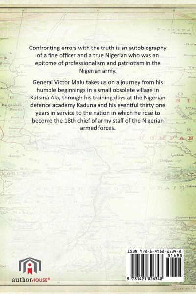 In the Name of Victor: Confronting Errors with the Truth is an autobiography of a fine officer and a true Nigerian who represents everything good about the Nigerian Army. In his own words, General Malu has remained true to type-honest, unbiased and brutally frank. The book delves into his early years from growing up in a small village in Benue State to his cadet training days at the Nigerian Defence Academy, and his historic rise through the ranks to become Nigeria's eighteenth chief of army staff.