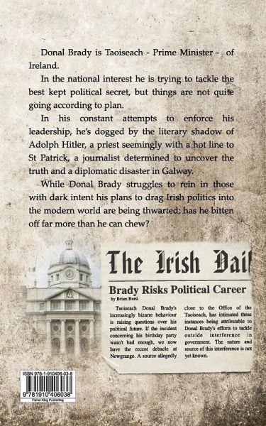 This work of fiction comes very close to reality in Ireland today. Donal Brady is Taoiseach - Prime Minister - of Ireland. In the national interest he is trying to tackle the best kept political secret, but things are not quite going according to plan. In his constant attempts to enforce his leadership, he's dogged by the literary shadow of Adolph Hitler, a priest seemingly with a hot line to St Patrick, a journalist determined to uncover the truth and a diplomatic disaster in Galway. While Donal Brady struggles to rein in those with dark intent his plans to drag Irish politics into the modern world are being thwarted; has he bitten off far more than he can chew?