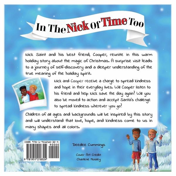 Nick Saint and his best friend, Cooper, reunite in this warm holiday story about the magic of Christmas. A surprise visit leads to a journey of self-discovery and a deeper understanding of the true meaning of the holiday spirit. Nick and Cooper receive a charge to spread kindness and hope in their everyday lives. Will Cooper listen to his friend and help Nick save the day again? Will you also be moved to action and accept Santa's challenge to spread kindness wherever you go? Children of all ages and backgrounds will be inspired by this story and will understand that love, hope and kindness come to us in many shapes and all colors.