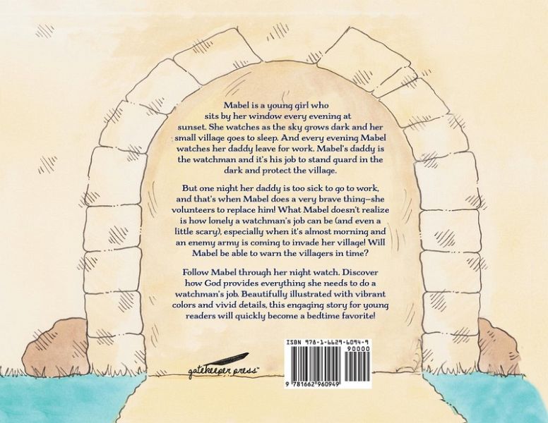 Mabel is a young girl who sits by her window every evening at sunset. She watches as the sky grows dark and her small village goes to sleep. And every evening Mabel watches her daddy leave for work. Mabel's daddy is the watchman and it's his job to stand guard in the dark and protect the village. But one night her daddy is too sick to go to work, and that's when Mabel does a very brave thing-she volunteers to replace him! What Mabel doesn't realize is how lonely a watchman's job can be (and even a little scary), especially when it's almost morning and an enemy army is coming to invade her village! Will Mabel be able to warn the villagers in time? Follow Mabel through her night watch. Discover how God provides everything she needs to do a watchman's job. Beautifully illustrated with vibrant colors and vivid details, this engaging story for young readers will quickly become a bedtime favorite!