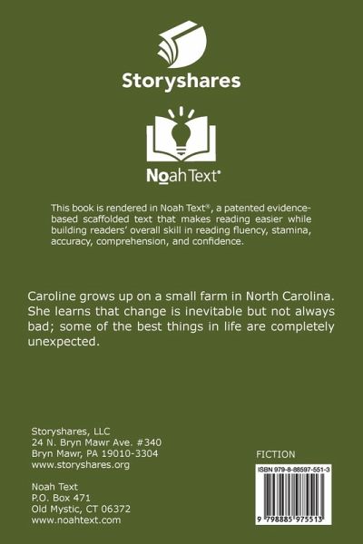 Caroline grows up on a small farm in North Carolina. She learns that change is inevitable but not always bad; some of the best things in life are completely unexpected.