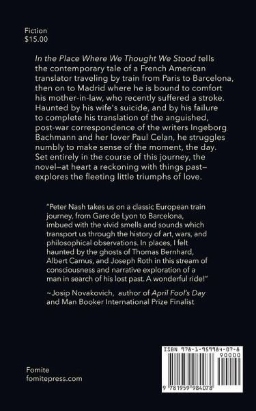 In the Place Where We Thought We Stood tells the story of a French-American translator travelling by train from Paris to Barcelona, then on to Madrid to comfort his mother-in-law who recently suffered a stroke. Haunted by his wife's recent suicide and by his inability to complete his translation of the correspondence of the writer Ingeborg Bachmann and her lover Paul Celan, he struggles numbly to make sense of the moment, the day. Set entirely in the course of this journey, the novel-at heart a reckoning with things past-explores the fleeting little triumphs of love.