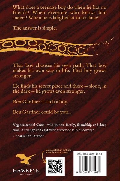 What does a teenage boy do when he has no friends? When everyone who knows him sneers. When he is laughed at to his face? The answer is simple. That boy chooses his own path. That boy makes his own way in life. That boy grows stronger. He finds his secret place and there - alone, in the dark - he grows even stronger. Ben Gardner is such a boy. Ben Gardner could be you...