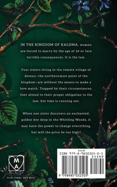 In the Kingdom of Kaloma, women are forced to marry by the age of 26. It's the law. In the remote village of Sevens, at the northernmost point of the kingdom, there lives an impoverished family with four daughters and a son. Without the means to make love matches, the daughters are trapped by their circumstances. When one daughter discovers a golden key deep in the Whitling Woods, it may have the power to change everything... Auri Fareview, practical and realistic, does what she can to serve her family. When she finds a golden key that could be the answer she needs to save her sisters from the unjust Kaloma Marriage Laws, she discovers the treasure might be more than she bargained for. Enchanted, it doesn't just come with a price attached, it's also home to an imprisoned god, who wreaks havoc on her body, her heart, and her soul. And those aren't practical matters. He has the power to break her. Nixus Uraiahs has lost track of how long he's been imprisoned by the spell on the key. There have been six key-keepers, all of whom have failed to break the spell to free him, and Nix knows he's the reason why they haven't. So, he will hold this 7th key-keeper accountable to the bargain of the spell: three wishes and a price for each. There's no hope in her freeing him, however. Nix knows she'll be like all the key-keepers who came before her. Except Auri approaches her wishes differently than any of the others, and Nix begins to see her as more than just a key-keeper. She intrigues him, proving her strength, surprising him, and enchanting him. Though he's entrapped by the enchantment placed on the key, Nix realizes his heart is at risk of being captured by the seventh key-keeper. That is a risk he can't afford to take knowing his villainy is just a single wish away.