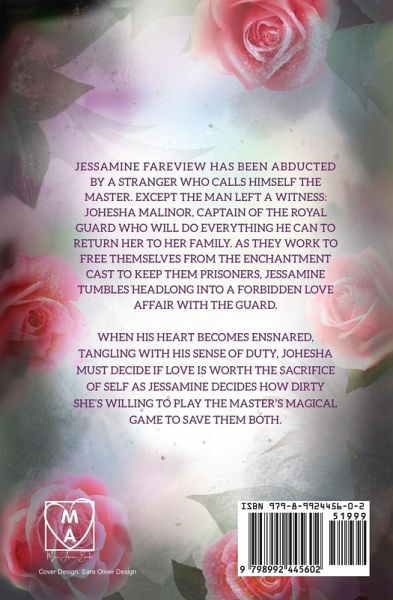 Unbeknownst to Jessamine Fareview who's still asleep under the spell cast by her mother, she's been abducted and carried off into the Kaloma landscape by a stranger who calls himself the Master. Only the man left a witness: Johesha Malinor, captain of the Royal Guard who abandons his post to follow. After infiltrating the Master's household, Johesha has also become ensnared in the stranger's web of enchantments. When he discovers a way to wake the sleeping Jessamine, Johesha sets into motion the Master's dark plot against Scarlett and her family.As Jessamine and Johesha work together to find a means to escape the enchanted manor, they find themselves drawn to one another, and fall into a forbidden love affair that risks both of their lives if discovered. When the opportunity to escape presents itself, they flee from the manor only to run headlong into another trap set by the Master who separates them with a spell. Now isolated from one another, Jessamine and Johesha must find a way not only to bring the Master to his knees, but find a way back to one another despite the magic keeping them apart.