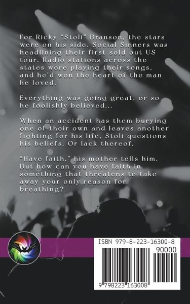 For Ricky "Stoli" Branson, the stars were on his side. Social Sinners was headlining their first sold out US tour. Radio stations across the states were playing their songs, and he'd won the heart of the man he loved. Everything was going great, or so he foolishly believed... When an accident has them burying one of their own and leaves another fighting for his life, Stoli questions his beliefs. Or lack thereof. "Have faith," his mother tells him. But how can you have faith in something that threatens to take away your only reason for breathing? Social Sinners series must be read in order as each book starts where the last one ended but from another band members point of view.