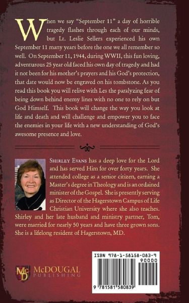 When we say "September 11" a day of horrible tragedy flashes through each of our minds, but Lt. Leslie Sellers experienced his own September 11 many years before the one we all remember so well. On September 11, 1944, during WWII, this fun loving, adventurous 25 year old faced his own day of tragedy and had it not been for his mother's prayers and his God's protection, that date would now be engraved on his tombstone. As you read this book you will relive with Les the paralyzing fear of being down behind enemy lines with no one to rely on but God Himself. This book will change the way you look at life and death and will challenge and empower you to face the enemies in your life with a new understanding of God's awesome presence and love.