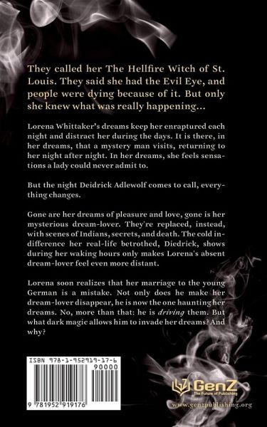 They called her The Hellfire Witch of St. Louis. They said she had the Evil Eye, and people were dying because of it. But only she knew what was really happening... Lorena Whittaker's dreams kept her in rapture each night and distracted during the days. It was there, in her dreams, that he continued to return to her. There, she felt sensations a lady could never admit to. But the night Deidrick Adlewolf came to call, everything changed. Gone were her dreams of pleasure and love, replaced with scenes of Indians, secrets, and death. The cold indifference Diedrick showed her during her waking hours only made her absent dream-lover feel even more distant. Lorena soon realizes that her marriage to the young German had been a mistake. He hadn't only made her dream-lover disappear, he was now the one participating in her dreams - no, it was more than that. He was driving them.