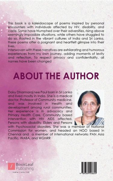 ""This book is a kaleidoscope of poems inspired by personal encounters with individuals affected by HIV, disability, and caste. Some have triumphed over their adversities, rising above seemingly impossible situations, while others have struggled to do so. Rooted in the vibrant cultures of India and Sri Lanka, these poems offer a poignant and heartfelt glimpse into their lives. Interwoven with these narratives are exhilarating and humorous experiences from my own journey, adding moments of levity and reflection. To respect privacy and confidentiality, all names have been changed ""