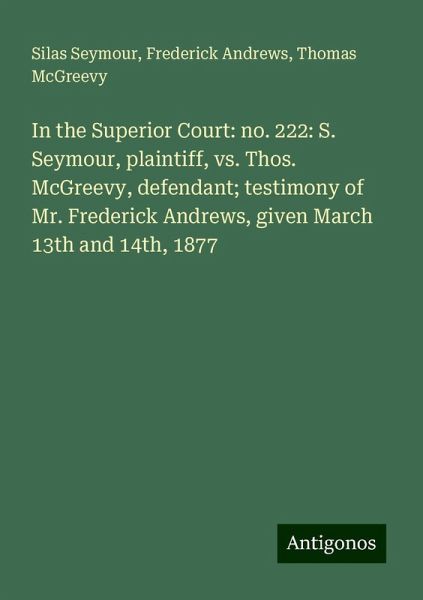 In the Superior Court: no. 222: S. Seymour, plaintiff, vs. Thos. McGreevy, defendant; testimony of Mr. Frederick Andrews, given March 13th and 14th, 1877 - Seymour, Silas; Andrews, Frederick; McGreevy, Thomas