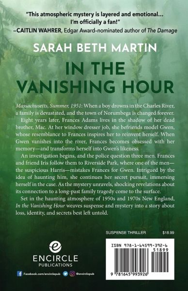 New England, Summer, 1951-When a thirteen-year-old boy drowns in the Charles River, a family is left devastated, and the town of Norumbega is changed forever. Eight years later, Frances Adams lives in the shadow of her dead brother Mac. She feels no identity, until she meets model Gwen, whose mystique inspires her to reinvent herself. When Gwen vanishes into the river and is presumed drowned, Frances becomes obsessed with her memory. She transforms herself into Gwen's likeness and feels a power she has not felt before.An investigation begins, and the police question three men last seen with Gwen. Frances and her friend Iris follow them to the local riverside park, where one of the men-the suspicious Harris-mistakes Frances for Gwen. Intrigued by the idea of haunting him, she continues her secret pursuit, drawing him closer as she immerses herself in the case. As the mystery unravels, shocking revelations about its connection to a long-ago family tragedy surface.In 1974, the former riverside park is excavated for new development, and two buried pasts are coming to light. Soon Frances will discover that the connections between Mac, Harris, and the mysterious Gwen are more profound-and chilling-than she ever imagined.