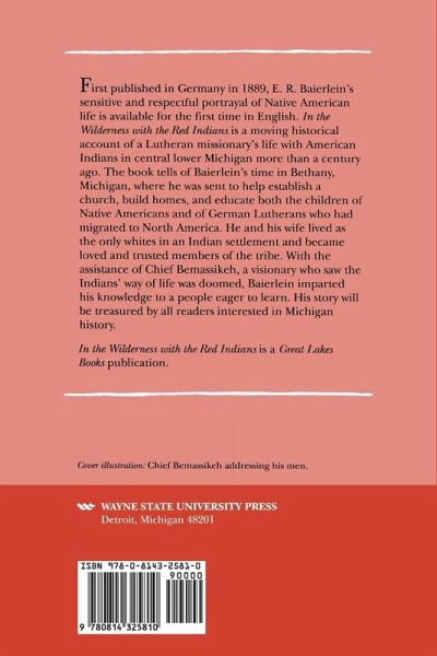 First published in Germany in 1889, E. R. Baierlein's sensitive and respectful portrayal of Native American life is available for the first time in English. In the Wilderness with the Red Indians is a moving historical account of a Lutheran missionary's life with American Indians in central lower Michigan more than a century ago. The book tells of Baierlein 's time in Bethany, Michigan, where he was sent to help establish a church, build homes, and educate both the children of Native Americans and of German Lutherans who had migrated to North America. He and his wife lived as the only whites in an Indian settlement and became loved and trusted members of the tribe. With the assistance of Chief Bemassikeh, a visionary who saw the Indians' way of life was doomed, Baierlein imparted his knowledge to a people eager to learn. His story will be treasured by all readers interested in Michigan history.