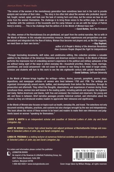 In the Words of Women is not only about women—their lives, contributions, trials and tribulations during the birth and early years of the United States—but also by women. Their voices evoke a sense of immediacy that enables readers, particularly students, to appreciate the difficulties, complexities, and ambiguities of life from before the Revolution through to its aftermath, a time of strife and upheaval.