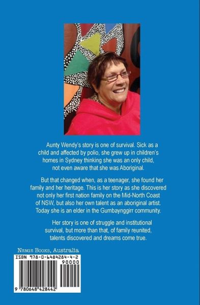 Growing up in children's and institutional homes, the author never realised she had a family or was aboriginal. Stricken by polio at a very young age, and being one of the youngest in a large family, she was made a ward of the state following her mother's death. Coupled with her need for treatment and rehabilitation, she grew up in state institutional homes in Sydney. In this honest account, she tells her story of coping with disabilities and institutional life believing she was alone in the world. Until one day, in her teens, she discovered her family and gradually reunited with them, eventually moving back to her home country at Coffs Harbour. At the same time she also discovered her talent as an artist in traditional aboriginal dot painting style. Today she is an elder in her Gumbaynggirr community on the mid north coast of NSW. Her story is an important contribution to the documentation of the lives of Aboriginal children.