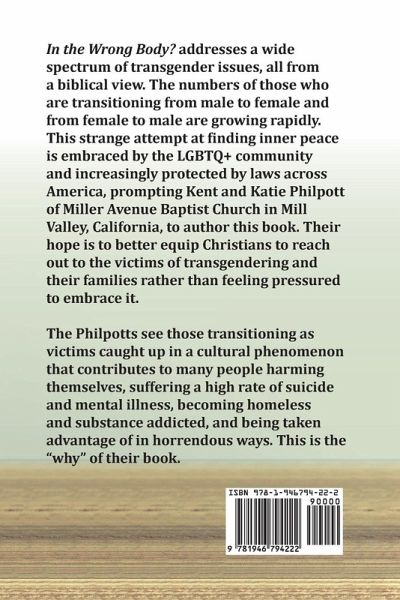 "In the Wrong Body? addresses transgender issues from a Biblical point of view with compassion for those who are confused or even harmed by the pressures coming from many camps to comply with certain standards, especially from the Woke community, but also from fundamental traditionalists. Presented here is a wealth of background information that includes quotes from LBGTQ regulars and clear Biblical references. This comes from the pastoral heart"--