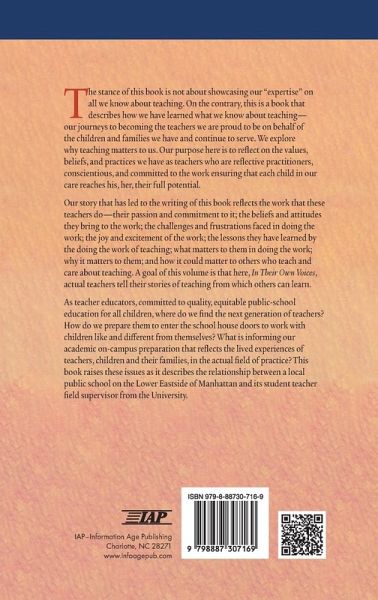 The stance of this book is not about showcasing our "expertise" on all we know about teaching. On the contrary, this is a book that describes how we have learned what we know about teaching - our journeys to becoming the teachers we are proud to be on behalf of the children and families we have and continue to serve. We explore why teaching matters to us. Our purpose here is to reflect on the values, beliefs, and practices we have as teachers who are reflective practitioners, conscientious, and committed to the work ensuring that each child in our care reaches his, her, their full potential. Our story that has led to the writing of this book reflects the work that these teachers do - their passion and commitment to it; the beliefs and attitudes they bring to the work; the challenges and frustrations faced in doing the work; the joy and excitement of the work; the lessons they have learned by the doing the work of teaching; what matters to them in doing the work; why it matters to them; and how it could matter to others who teach and care about teaching. A goal of this volume is that here, In Their Own Voices, actual teachers tell their stories of teaching from which others can learn. As teacher educators, committed to quality, equitable public-school education for all children, where do we find the next generation of teachers? How do we prepare them to enter the school house doors to work with children like and different from themselves? What is informing our academic on-campus preparation that reflects the lived experiences of teachers, children and their families, in the actual field of practice? This book raises these issues as it describes the relationship between a local public school on the Lower Eastside of Manhattan and its student teacher field supervisor from the University.