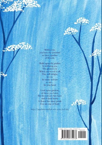This poetry book is about the garden of you and how you feel It is all in the heart,colours and scent,is yours to give from within and in all its' meanings. Within you,you have the potential to have a garden of flowers.Build upon the garden.It will bring you the greatest joy.When you reveal to all.They will delight,in you.So many colours to see....In your heart.Look upon gardens,of those you know.See the colours they have and in their hearts.A flower has many petals. You are one of them This book has been specially created in A4 size for ease of reading and sharing.