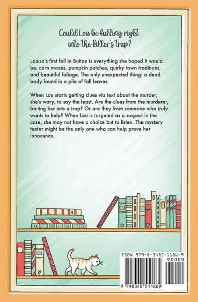 Could Lou be falling right into the killer's trap? Louisa's first fall in Button is everything she hoped it would be: corn mazes, pumpkin patches, quirky town traditions, and beautiful foliage. The only unexpected thing: a dead body found in a pile of colorful leaves. When Lou starts getting text messages about the murder, she's wary, to say the least. Are the clues from the murderer baiting her into a trap? Or are they from someone who truly wants to help? When Lou is targeted as a suspect in the case, she may not have a choice but to listen. The mystery texter might be the only one who can help prove her innocence. Dear reader, if you love rescue cats, goats who wear pajamas, and a cozy bookstore, you're going to love this new series by Eryn Scott. Hold on to your hats. The town of Button is as cute as they come, but that doesn't mean it's free of murder. Each book and mystery stands alone. Curl up under a cozy blanket, cuddle with a cat (or two), and come join Lou as she solves mysteries in the town of Button.