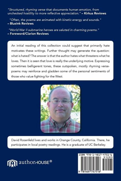 An initial reading of this collection could suggest that primarily hate motivates these writings. Further thought may generate the question: what is hated? The answer is that the author hates what threatens what he loves. Then it is seen that love is really the underlying motive. Expressing sometimes belligerent tones, these outspoken, mostly rhyming verse-poems may reinforce and gladden some of the personal sentiments of those who value fighting for the West.