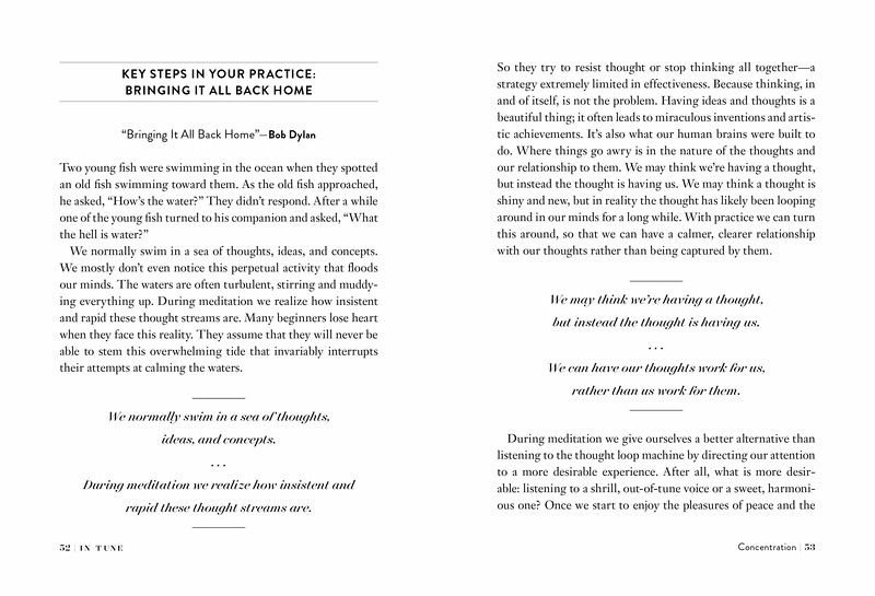 Richard Wolf first tried Zen meditation in his teens, but no matter in what posture or for how long he sat, transcendence proved stubbornly out of reach. It was only years later that he found the bridge that could take him there: music. In Tune charts twelve "bridges"-skills and sensibilities refined in musical practice that carry over to mindfulness and meditation, among them: * Concentration * Posture * Harmony * Silence * The Art of Deep Listening * Transcending the Self This inspirational guide offers a wealth of music-based exercises to enhance daily meditation and creativity. Plus, Wolf shares personal anecdotes of eminent musicians-from Miles Davis to Dr. Dre-to illuminate points along the intersection of music and mindful living. As you begin to move fluidly between these two transformative disciplines, you'll notice the focus, composure, and peacefulness that comes from practice-as well as the joys of tuning in to the music all around you, and to the symphony that plays silently from within.