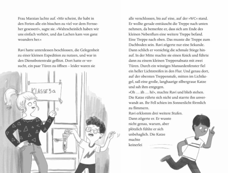 Toll fand ich dagegen die Charaktere, die witzig und liebevoll gestaltet sind: Der strenge Hausmeister, vor dem man sich immer in Acht nehmen muss, die nette Lehrerin mit dem schönen Spitznamen "Frau Marzipan" und die alte Frau Einsiedel, die trotz ihrer Gedächtnisschwierigkeiten geheimnisvolle Andeutungen macht, haben mir besonders gefallen. Die Figuren tragen die Geschichte, so dass ich sie trotz der eher langsamen Handlung gerne gelesen habe. Vor allem der kleine Ravi hat mir mit seinen frechen Bemerkungen immer wieder ein Schmunzeln entlockt.