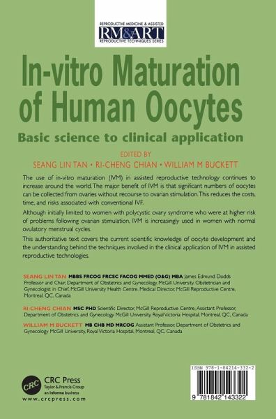 Seang Lin Tan MBBS FRCOG FRCSC FACOG MMed (O&G) MBA, James Edmund Dodds Professor and Chair, Department of Obstetrics and Gynecology, McGill University, Obstetrician and Gynecologist in Chief, McGill University Health Centre, Medical Director, McGill Reproductive Centre, Montreal QC, Canada. Ri-Cheng Chian MSC PhD, Scientific Director, McGill Reproductive Centre ,Assistant Professor, Department of Obstetrics and Gynecology, McGill University Royal Victoria Hospital, Montreal QC, Canada. William M Buckett MB chB MD MRCOG, Assistant Professor, Department of Obstetrics and Gynecology, McGill University Royal Victoria Hospital, Montreal, QC, Canada.