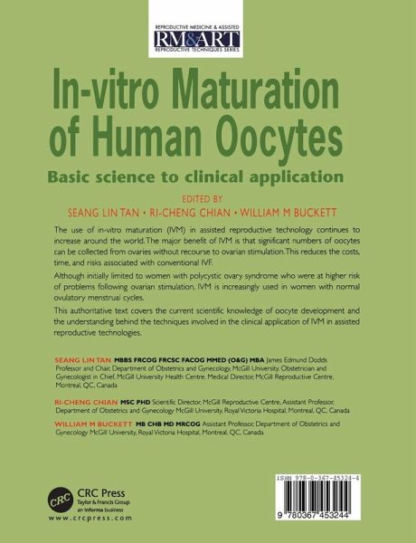Seang Lin Tan MBBS FRCOG FRCSC FACOG MMed (O&G) MBA, James Edmund Dodds Professor and Chair, Department of Obstetrics and Gynecology, McGill University, Obstetrician and Gynecologist in Chief, McGill University Health Centre, Medical Director, McGill Reproductive Centre, Montreal QC, Canada. Ri-Cheng Chian MSC PhD, Scientific Director, McGill Reproductive Centre ,Assistant Professor, Department of Obstetrics and Gynecology, McGill University Royal Victoria Hospital, Montreal QC, Canada. William M Buckett MB chB MD MRCOG, Assistant Professor, Department of Obstetrics and Gynecology, McGill University Royal Victoria Hospital, Montreal, QC, Canada.