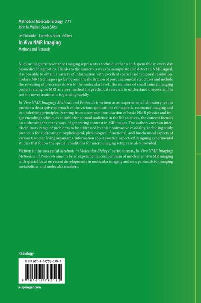 Nuclear magnetic resonance imaging represents a technique that is indispensable in every day biomedical diagnostics. Thanks to the numerous ways to manipulate and detect an NMR signal, it is possible to obtain a variety of information with excellent spatial and temporal resolution. Today's MRI techniques go far beyond the illustration of pure anatomical structures and include the revealing of processes down to the molecular level. The number of small animal imaging centers relying on MRI as a key method for preclinical research to understand diseases and to test for novel treatments is growing rapidly. In Vivo NMR Imaging: Methods and Protocols is written as an experimental laboratory text to provide a descriptive approach of the various applications of magnetic resonance imaging and its underlying principles. Starting from a compact introduction of basic NMR physics and image encoding techniques suitable for a broad audience in the life sciences, the concept focuses on addressing the many ways of generating contrast in MR images. The authors cover an interdisciplinary range of problems to be addressed by this non-invasive modality, including study protocols for addressing morphological, physiological, functional, and biochemical aspects of various tissues in living organisms. Information about practical aspects of designing experimental studies that follow the special conditions for micro imaging setups are also provided.