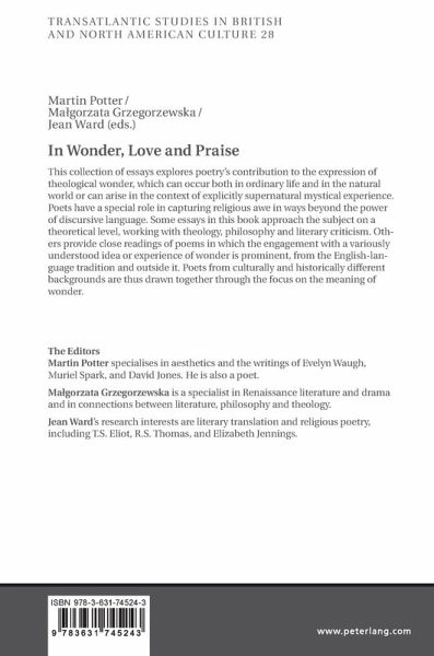 This collection of essays explores poetry's contribution to the expression of theological wonder, which can occur both in ordinary life and in the natural world or can arise in the context of explicitly supernatural mystical experience. Poets have a special role in capturing religious awe in ways beyond the power of discursive language. Some essays in this book approach the subject on a theoretical level, working with theology, philosophy and literary criticism. Others provide close readings of poems in which the engagement with a variously understood idea or experience of wonder is prominent, from the English-language tradition and outside it. Poets from culturally and historically different backgrounds are thus drawn together through the focus on the meaning of wonder.