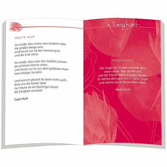 In Zeiten der Trauer fehlen oft die Worte für den eigenen und den fremden Schmerz. Einfühlsam nehmen die hier ausgewählten Texte die Gefühle und Gedanken Trauernder auf und spenden Trost.