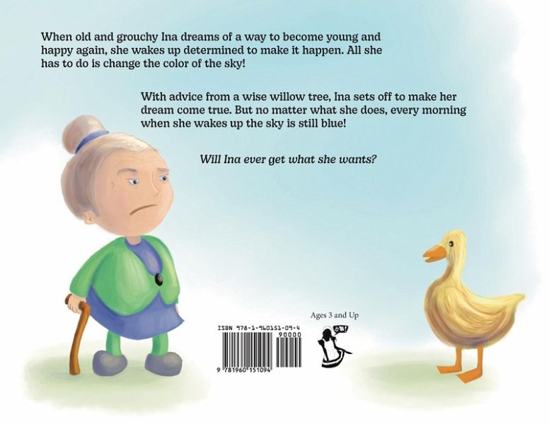When old and grouchy Ina dreams of a way to become young and happy again, she wakes up determined to make it happen. All she has to do is change the color of the sky! With advice from a wise willow tree, Ina sets off to make her dream come true. But no matter what she does, every morning when she wakes up the sky is still blue! Will Ina ever get what she wants?