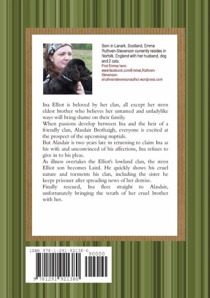 When passions develop between Ina and the heir of firm friends the Brothaigh's, everyone is excited at the prospect of a marriage. But Alasdair Brothaigh is two years late in returning to Ina and she is no longer convinced of his affections. Working his hardest to secure her hand in marriage the wedding preperations start. However a terrible illness penetrates the Elliot clan killing many including the Laird. Uncertain of what they are dealing with Ina orders the gates closed and orders Alasdair to stay away. New Laird, David Elliot quickly shows his cruelty as he depletes the rescources of the once affluent clan. Convincing everyone of Ina's death, he holds her prisoner using her to fulfill his perverse enjoyment of brutality. Finally being rescued by the middle Elliot child, Declan, he helps her to run to the Brothaigh lands were they hope to seek protection from Alasdair who is now Laird.