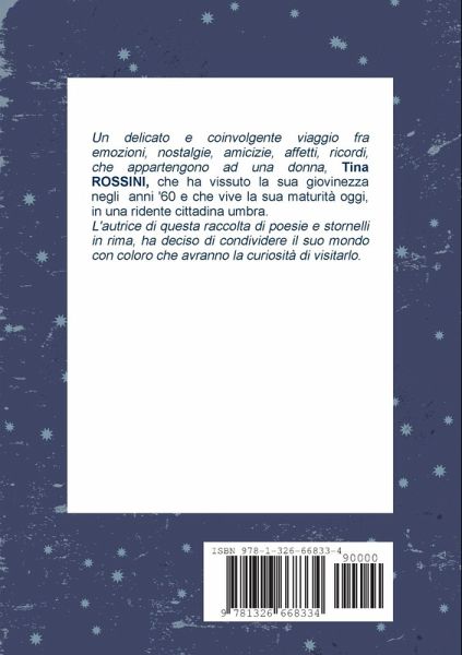 raccolta di poesie e stornelli che raccontano scampoli di vita vissuta, fra emozioni delicate, esperienze divertenti e desiderio di condivisione.