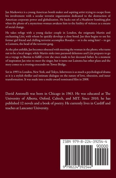 Jan Markowicz is a young American bomb maker and aspiring artist trying to escape from his involvement with a secular terrorist organization dedicated to the destruction of American corporate power and globalization. He backs out of a Heathrow bombing plot when the photo of a mysterious woman awakens him to the futility of violence as a means of social change. He takes refuge with a young slacker couple in London, the enigmatic Martin and enchanting Liisi, with whom he quickly develops a close bond. Jan then begins to use his former girl friend and chilling terrorist accomplice Rosalyn - or is she using him? - to get at Luinstra, the head of the terrorist gang. As the plot unfolds, Jan becomes obsessed with meeting the woman in the photo, who turns out to be a local singer, while Martin sinks into paranoid delusions and Liisi prepares to go on a voyage to Burma to fulfill a vow she once made to her deceased father. Jan begins to paint portraits of the singer, while also planning and then executing an attack on Luinstra's hide out. In a moment of inspiration Jan tries to meet the singer, but it turns out Luinstra has other plans and the story comes to a riveting crescendo on Tower Bridge. Set in 1993 in London, New York, and Tokyo, Inbetween is as much a psychological drama as it is a stylish thriller and intimate dialogue on the nature of love, obsession, and inner transformation. Inspired by earlier film successes Performance and The Crying Game, but with the raw energy of Naked, Inbetween was made into a mutt-award nominated film in 2008 and portrays a dark underworld filled with hypocritical terrorist leaders and petty drug dealers against a dreamy, almost hallucinatory counter-world in which each character is locked in a universe of their own personal obsessions. Yet the message is life affirming, as Inbetween is ultimately about love and redemption in the face of violence and futility.