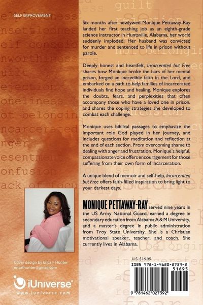 Six months after newlywed Monique Pettaway-Ray landed her first teaching job as an eighth-grade science instructor in Huntsville, Alabama, her world suddenly imploded. Her husband was convicted for murder and sentenced to life in prison without parole. A vital part of her life was ripped from her-and Monique didn't know how to cope. Deeply honest and heartfelt, Incarcerated but Free shares how Monique broke the bars of her mental prison, forged an incredible faith in the Lord, and embarked on a path to help families of incarcerated individuals find hope and healing. Monique explores the doubts, fears, and perplexities that often accompany those who have a loved one in prison, and shares the coping strategies she developed to combat each challenge. Monique uses biblical passages to emphasize the important role God played in her journey, and includes questions for meditation and reflection at the end of each section. From overcoming shame to dealing with anger and frustration, Monique's helpful, compassionate voice offers encouragement for those suffering from their own form of incarceration. A unique blend of memoir and self-help, Incarcerated but Free offers faith-filled inspiration to bring light to your darkest days.