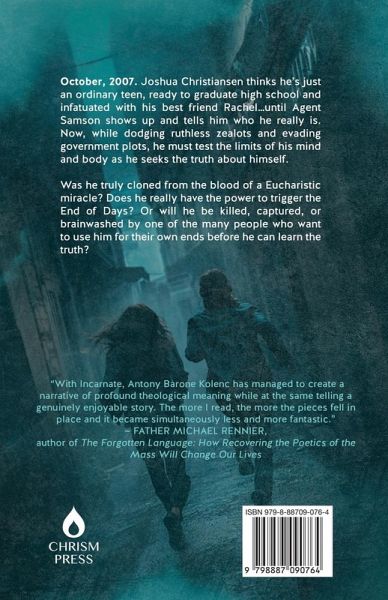 October, 2007. Joshua Christiansen thinks he's just an ordinary teen, ready to graduate high school and infatuated with his best friend Rachel...until Agent Samson shows up and tells him who he really is. Now, while dodging ruthless zealots and evading government plots, he must test the limits of his mind and body as he seeks the truth about himself. Was he truly cloned from the blood of a Eucharistic miracle? Does he really have the power to trigger the End of Days? Or will he be killed, captured, or brainwashed by one of the many people who want to use him for their own ends before he can learn the truth?