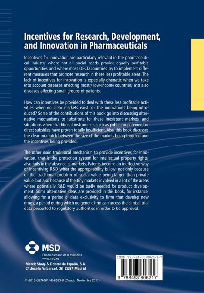Incentives for innovation are particularly relevant in the pharmaceutical industry where not all social needs provide equally profitable opportunities and where most OECD countries try to implement different measures that promote research in these less profitable areas. This book describes how incentives can be provided to deal with less profitable activities when no clear markets exist for the innovations. The book discusses alternative mechanisms to substitute for inexistent markets, situations where traditional instruments have proven totally insufficient, and the clear mismatch between the size of the markets being targeted and the incentives being provided. Patents become an ineffective way to incentivise R&D when the appropriability is low; this book provides alternative ideas such as allowing for a period of data exclusivity to firms that develop new drugs.