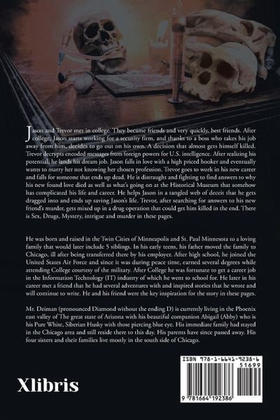 Jason and Trevor met in college. They became friends and very quickly, best friends. After college, Jason starts working for a security firm, and thanks to a boss who takes his job away from him, decides to go out on his own. A decision that almost gets himself killed. Trevor decrypts encoded messages from foreign powers for U.S. intelligence. After realizing his potential, he lands his dream job. Jason falls in love with a high priced hooker and eventually wants to marry her not knowing her chosen profession. Trevor goes to work in his new career and falls for someone that ends up dead. He is distraught and fighting to find answers to why his new found love died as well as what's going on at the Historical Museum that somehow has complicated his life and career. He helps Jason in a tangled web of deceit that he gets dragged into and ends up saving Jason's life. Trevor, after searching for answers to his new friend's murder, gets mixed up in a drug operation that could get him killed in the end. There is Sex, Drugs, Mystery, intrigue and murder in these pages.