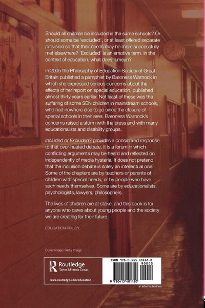This highly topical book suggests that distinctions should be made between kinds of special need, and the possibility addressed that some SEN children might be happier and more effective as learners within non-mainstream settings.