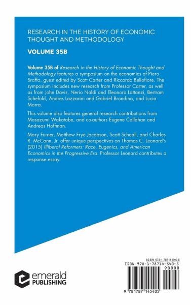 Volume 35B of Research in the History of Economic Thought and Methodology features a symposium on the economics of Piero Sraffa, guest edited by Scott Carter and Riccardo Bellofiore. It also features general research contributions from Masazumi Wakatabe, and co-authors Eugene Callahan and Andreas Hoffman.