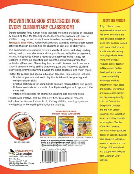 ((Teachers Catalog Copy, Set Description, C Copy)) Meet the challenge of inclusion with these innovative, standards-based activities that help teachers accommodate learners' diverse abilities, enhance student performance, create an accepting classroom climate, and more. ((Dealers Catalog Copy, Set Description, C Copy)) Guaranteed to help all teachers meet the needs of diverse learners, these resources are packed with classroom-tested, adaptable activities; valuable inclusion tips; and much more.