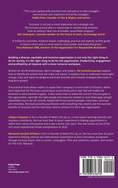 Building a diverse, equitable and inclusive organization is not only the right thing to do for society, it's the right thing to do for the business. Productivity, engagement and profitability all improve with a more inclusive workplace. Written for all HR professionals, talent managers and leaders concerned with inclusion in their organization, The Inclusion Journey explains how to identify the actions that will make real impact, implement meaningful change, track and report on progress and build diversity and inclusion strategies that result in long-term growth. This practical book allows readers to assess their company's current situation when it comes to diversity and inclusion and define their objectives for the future. It also shows how to produce a prioritized action plan that will enable the business to work towards its goals and track the progress along the way. It covers everything from the business benefits of inclusion and the current inclusion gaps in the organization, through to assembling the right people and resources needed to close these gaps. There is also guidance on how to get stakeholder buy-in for EDI activity and advice on how to link diversity and inclusion goals to overall business objectives. Packed full of real world examples, interviews, exercises and checklists throughout, there are also downloadable worksheets to provide practitioners with everything they need to see the business benefits of inclusion in practice and have the tools they need to achieve these in their own organization.