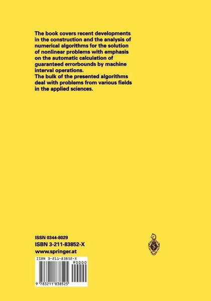 The book covers recent developments in the construction and the analysis of numerical algorithms for the solution of nonlinear problems with emphasis on the automatic calculation of guaranteed errorbounds by machine interval operations.