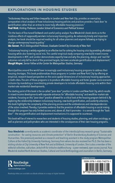 The starting point of this book is the so-called "poor door" practice in London and New York City, which results in mixed-income developments with separate entrances for "affordable housing" and wealthier market-rate residents. Focusing on this "poor door" practice allowed for a critical look at the housing program behind it. By exploring the relationship between inclusionary housing, new-build gentrification, and austerity urbanism, this book highlights the complexity of the planning process and the ambivalences and interdependencies of the actors involved. Thereby, it provides evidence that the provision of affordable housing or social mixing through this program has only limited success and, above all, that it promotes - in a sense through the "back door" - the very gentrification and displacement mechanisms it is supposed to counteract.