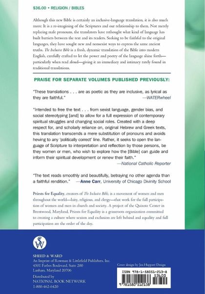 Seeking to be faithful to the original languages, Priests for Equality have sought new and non-sexist ways to express the same ancient truths. The Inclusive Bible is a fresh, dynamic translation into modern English, carefully crafted to let the power and poetry of the language shine forth-particularly when read aloud-giving it an immediacy and intimacy rarely found in traditional translations of the Bible.